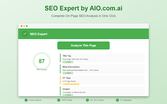 SEO Expert By AIO.com.ai is een gratis app voor Chrome, die deel uitmaakt van de categorie 'Add-ons & Tools'.Over SEO Expert Door AIO.com.ai voor Chrome